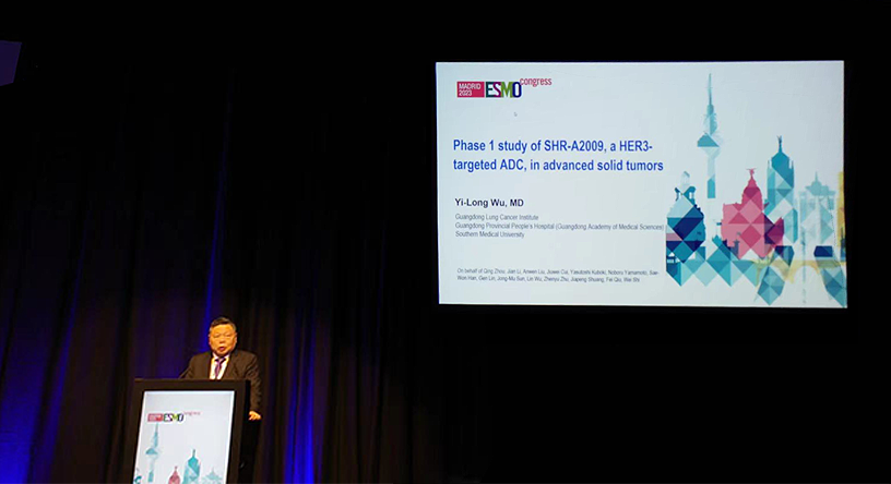 10月23日,金年会医药创新药、HER3靶向ADC药物SHR-A2009治疗晚期实体瘤的I期研究亮相2023 ESMO大会简短口头报告现场5。该研究由广东省人民医院的吴一龙教授牵头开展,吴一龙教授在现场公布该研究的重要进展。研究结果显示,SHR-A2009在经治晚期实体瘤患者中显示出可控的安全性和令人鼓舞的抗肿瘤活性。目前评估更高剂量的SHR-A2009在选定癌症类型(NSCLC和其他实体肿瘤)中作用的试验正在进行中。