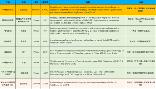 在头颈肿瘤、乳腺癌、肺癌、前列腺癌等多个疾病领域,卡瑞利珠单抗、阿得贝利单抗、吡咯替尼、氟唑帕利、法米替尼、醋酸阿比特龙片(II)等抗肿瘤新药相关研究一共入选了1项简短口头报告、4项壁报展示和1项电子壁报,彰显了金年会医药强劲的研发实力。此外,金年会医药自主研发的血小板生成素受体激动剂(TPO-RA)海曲泊帕在肿瘤治疗所致血小板减少领域、新一代长效G-CSF产品硫培非格司亭在肿瘤治疗所致中性粒细胞减少症领域各入选1项壁报展示。